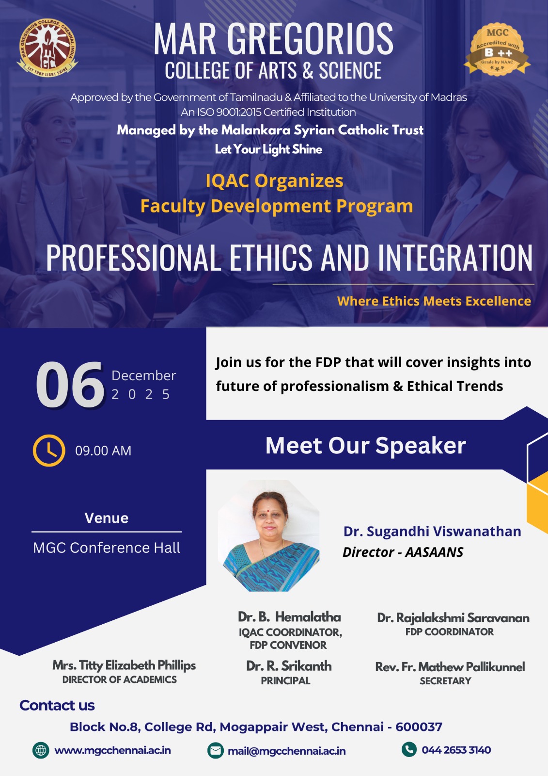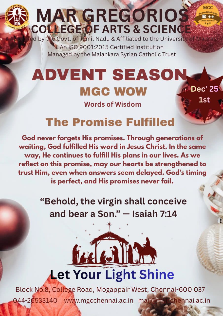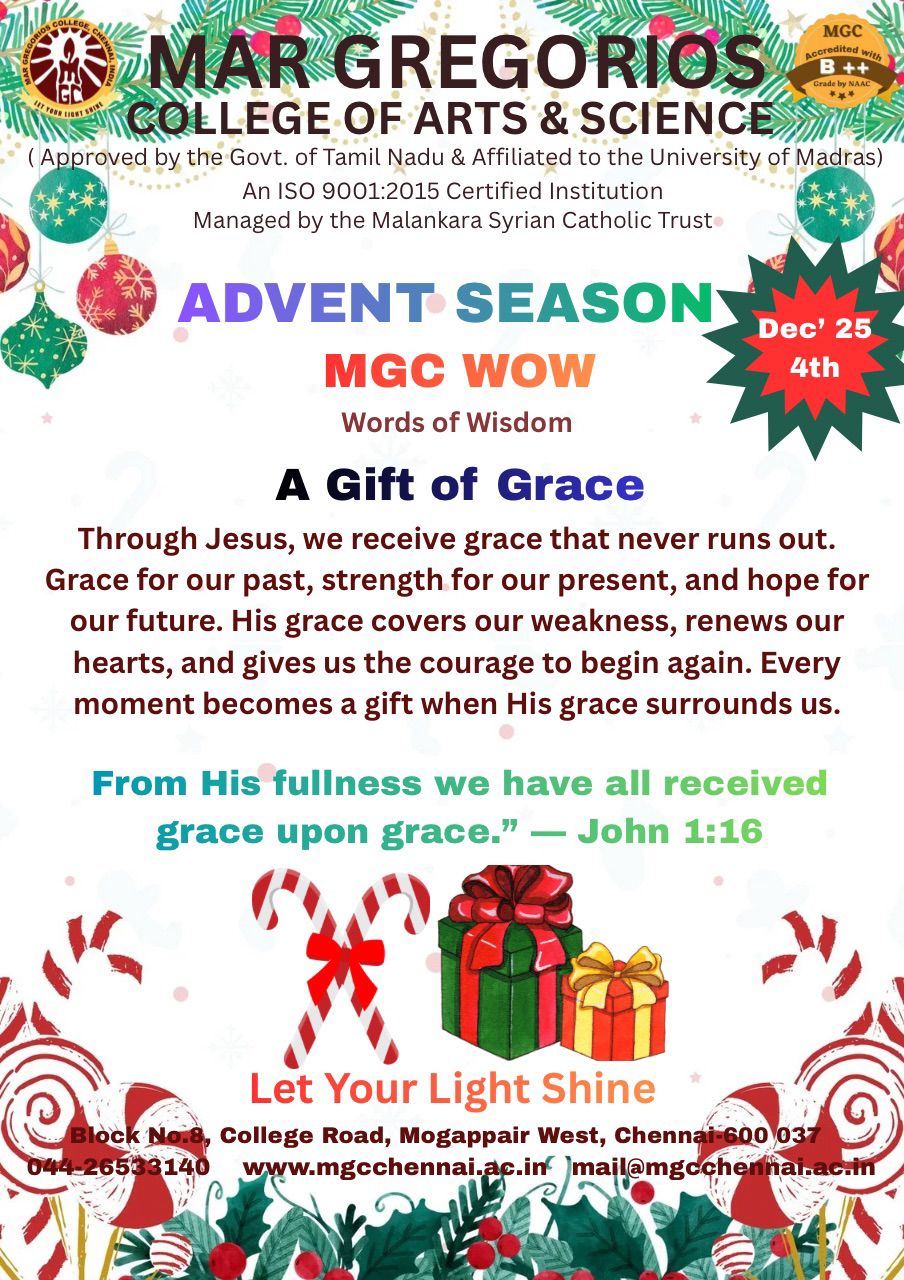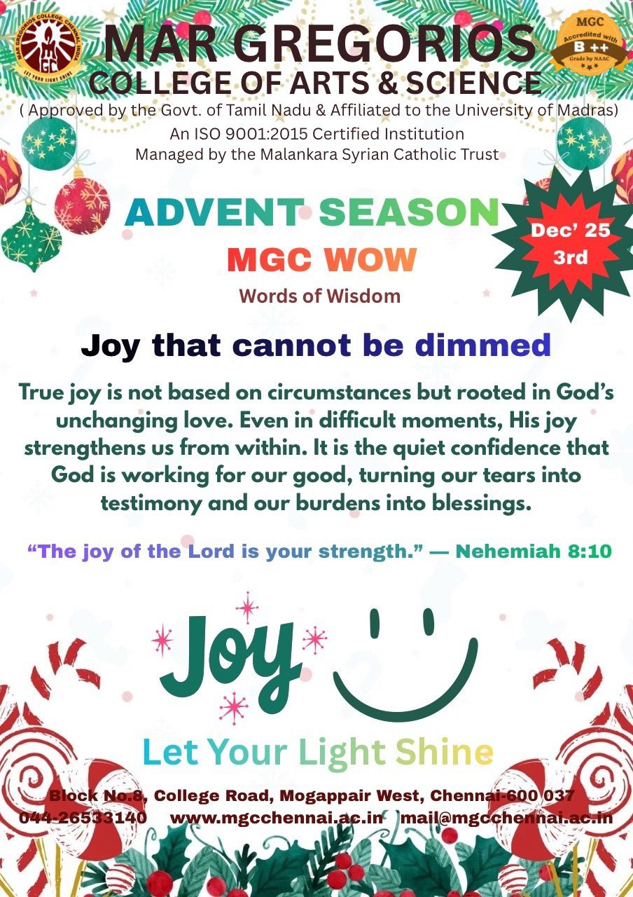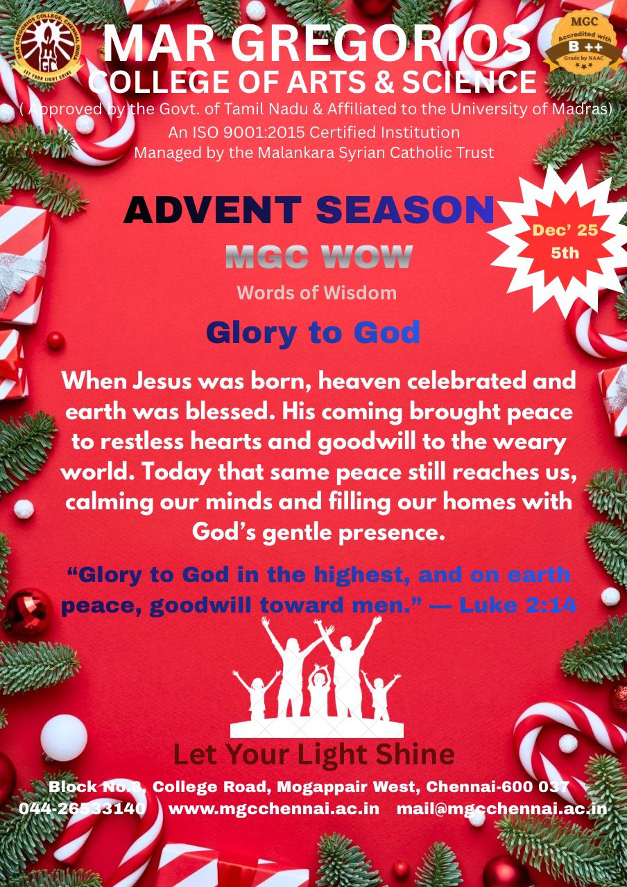 MGC Cordially invite you to an Intra College Cultural Extravaganza on 1st March, 2024 from 09:30AM onwards. The Chief Guest is Dr.Parveen Sultana M.A.,M.Phil., Ph.D, Professor in Justice Basheer Ahamed Women’s Colleg Tamil Orator, Educationalist, Motivational Speaker and a Well-known Debater