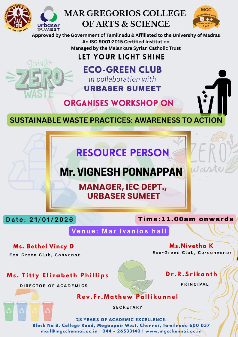 The NSS Day was celebrated on 24th Sep 2019.A Workshop on 'Sustainable Living' by A.M.Malathy was organised.