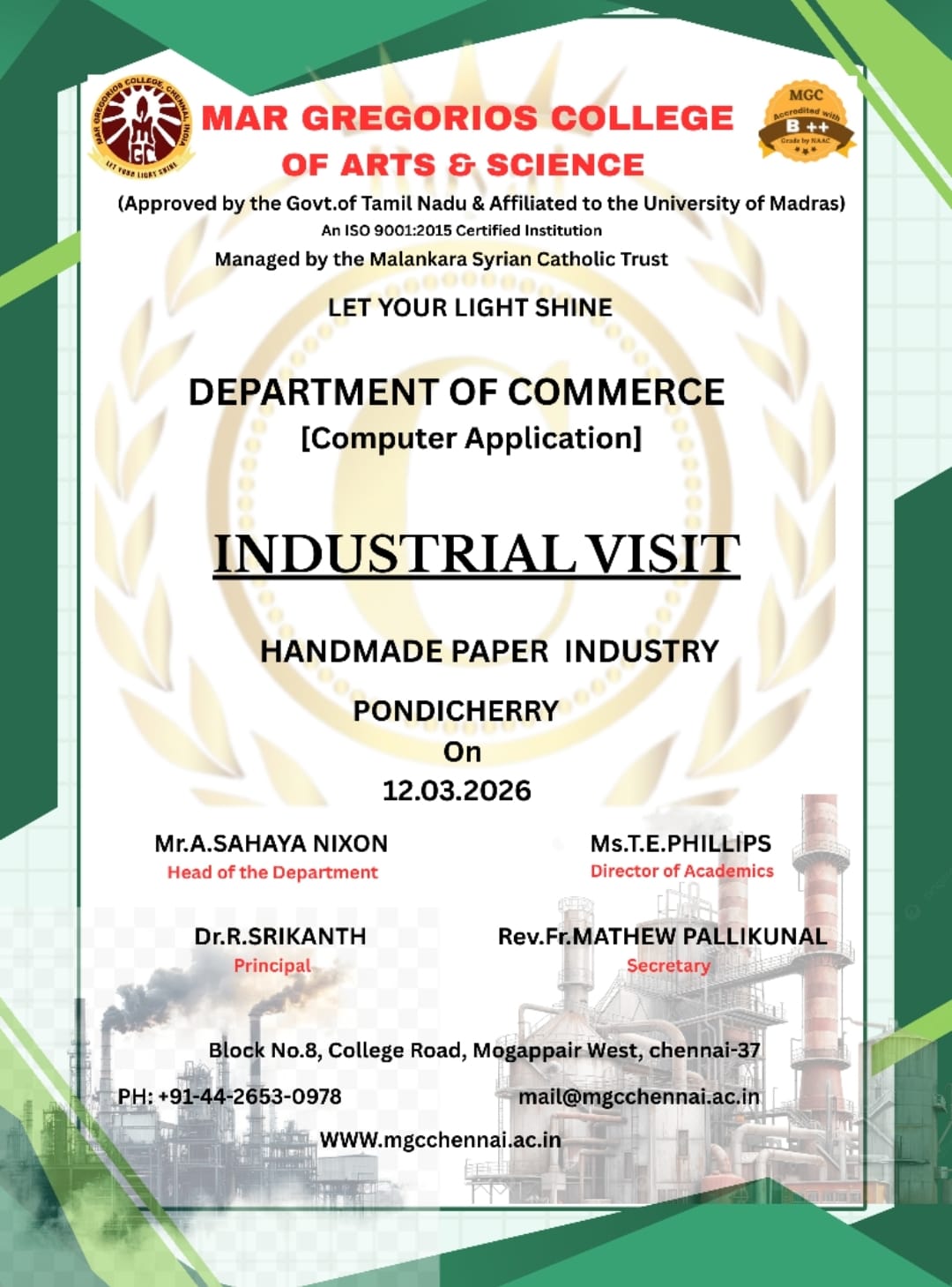 VENUE: HANDMADE PAPER INDUSTRY, PONDICHERRY