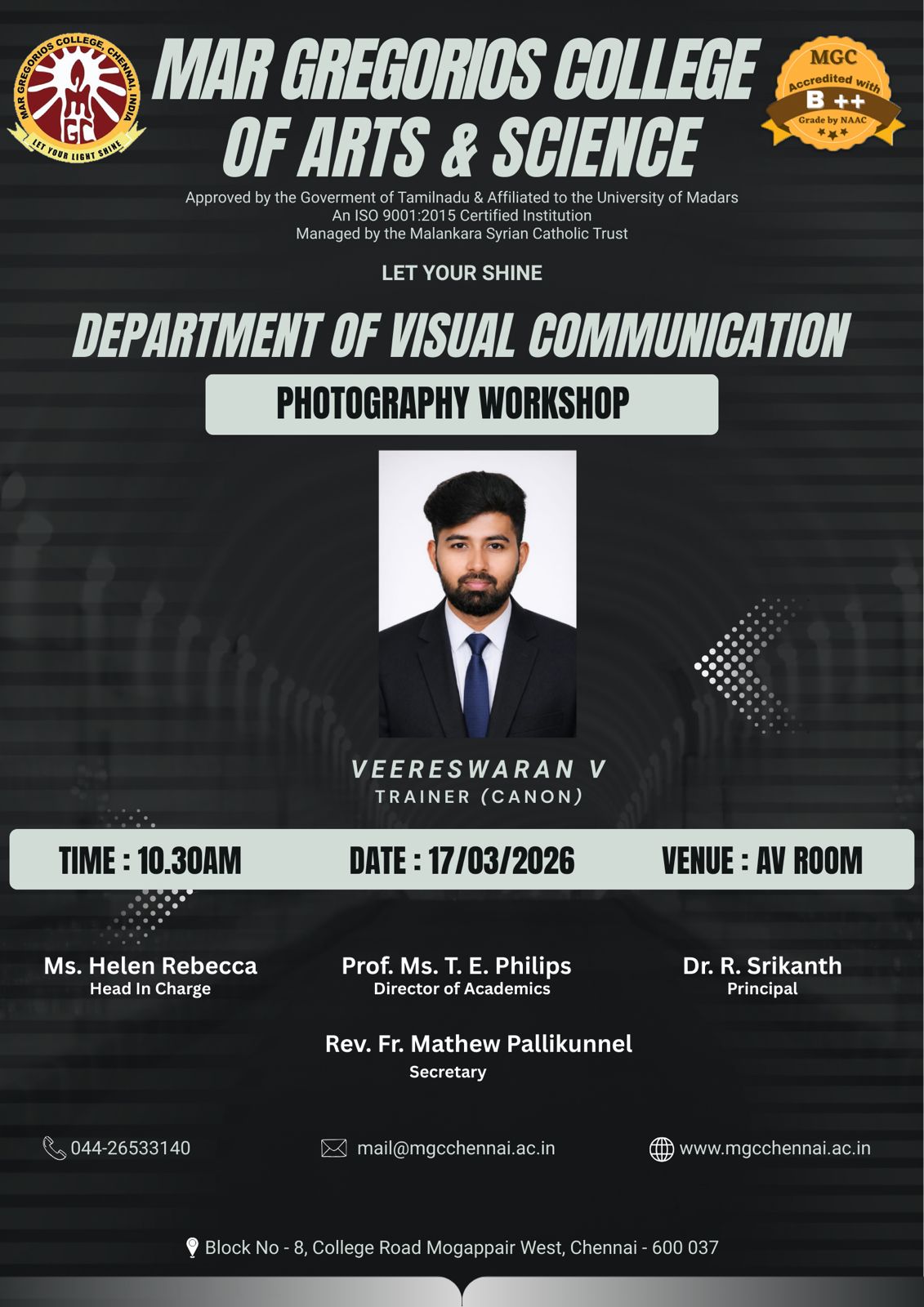Our beloved Secretary Rev.Fr.Philip Pulipra alias Santhosh Thomas has been elected as the Secretary and Treasurer of Tamil Nadu region of Xavier Board of Higher Education, India. The staff and students of MGC felt proud and wished him for this great success.