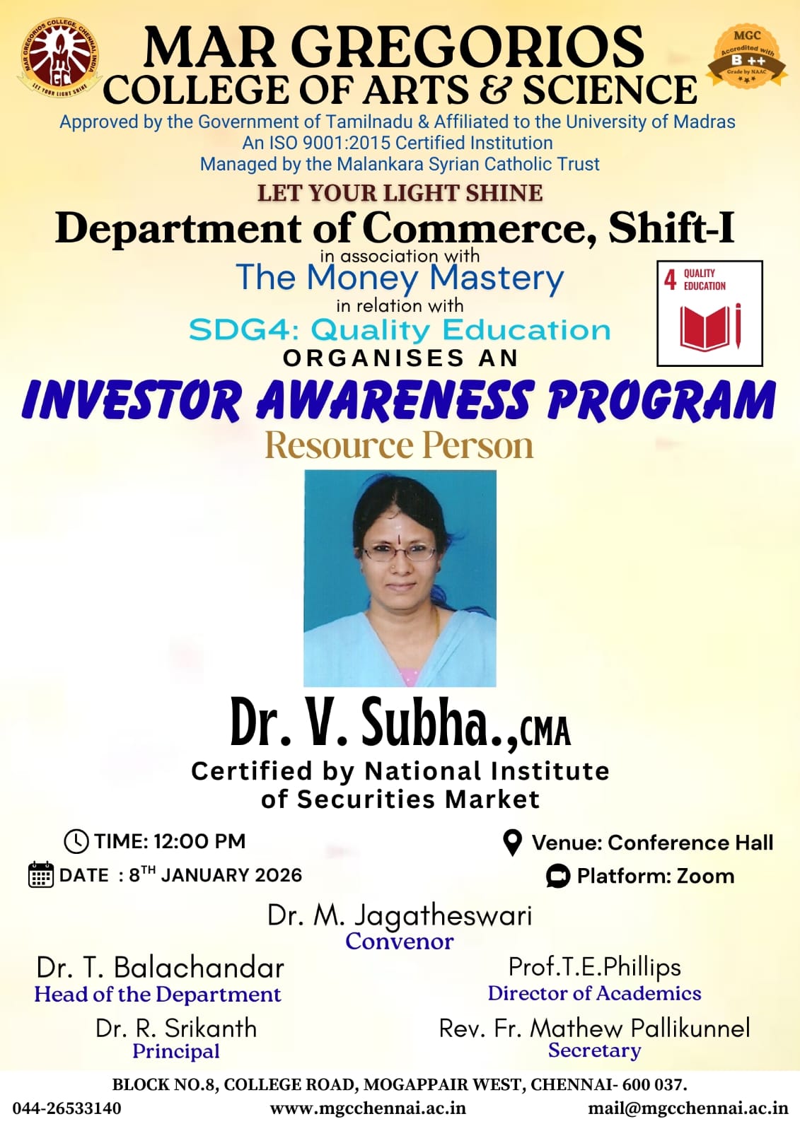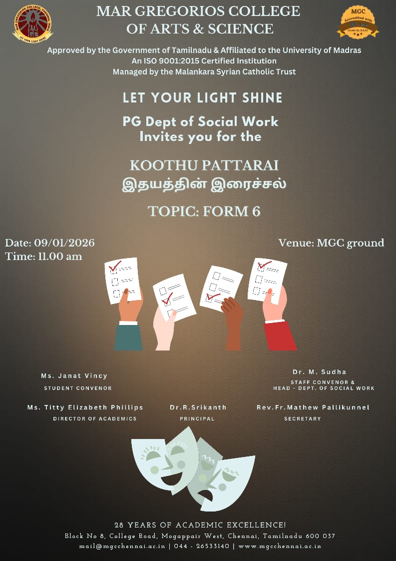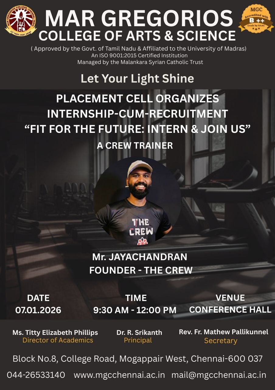 Mar Gregorios College organize "Virtual 24th Annual Day" on 27th May 2021 at 11am. Resource Person. Mr Dr.S.SRIMAN NARAYANAN Vice-Chancellor , Vels Institute of Science, VISTAS, Deemed to be University ,Chennai.
