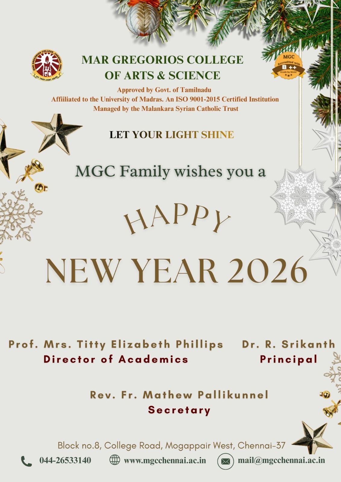 MGC family cordially invites you for the "Silver Jubilee Year" Inaugural ceremony on 7th sept 2021 at 6pm.Inaugural Address:- HIS EXCELLENCY DR.THOMAS MAR ANTHONIOS Chairman and Manager Bishop of Exarchate of St.Ephrem Khadki-Pune,Chief Guest: Athulya Ravi ,Film Actress Kollywood.